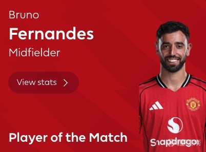 最终经过英超官网球迷投票,布鲁诺-费尔南德斯以81%的得票率当选全场最佳球员。