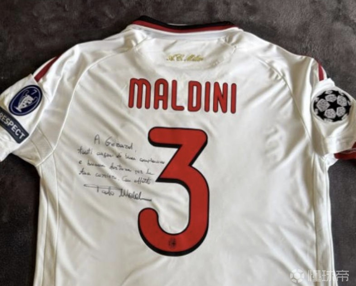 在巴塞罗那更衣室里被队友戏称为“赫拉德-马尔蒂尼”的赫拉德-马丁,近日在社交媒体动态中晒出了一张特别的生日礼物——一件由保罗-马尔蒂尼亲笔签名的球衣。