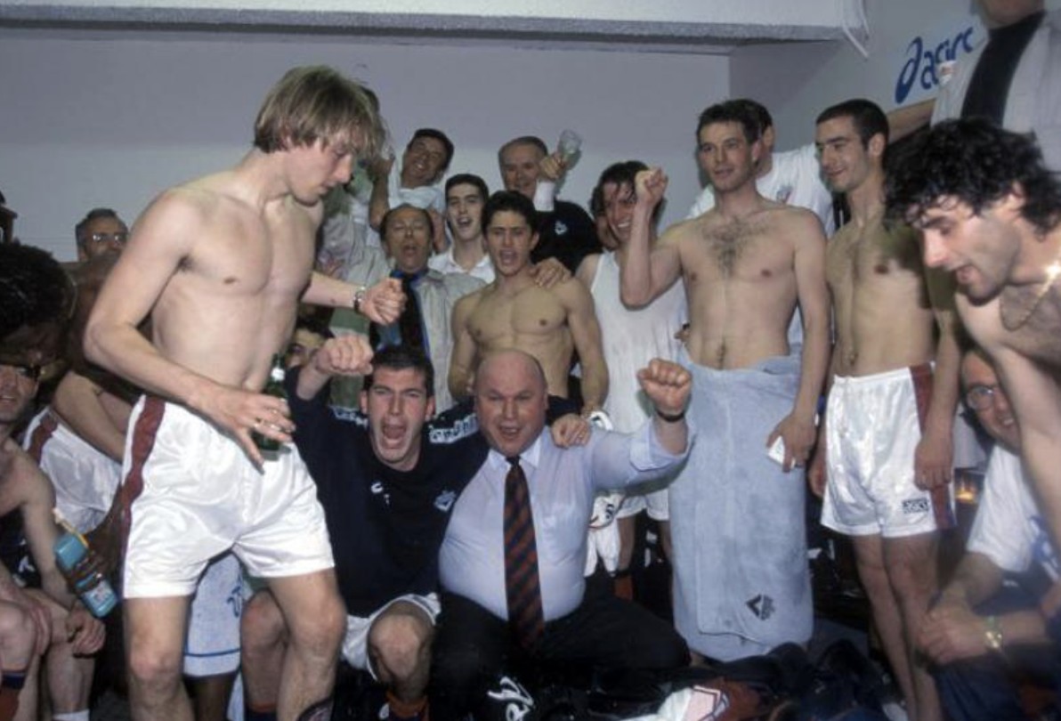 齐达内:那是属于朋友的时光,非常像一个大家庭。更衣室里的欢乐,还有杜加里和利扎拉祖。还有对阵伟大的米兰那场比赛!首回合我们客场0-2失利,次回合完成逆转(1996年欧洲联盟杯四分之一决赛,3-0)。那是情感上的重大时刻,我们的青春……那时我们还不太出名,但通过那次晋级,我们开始打响名号。