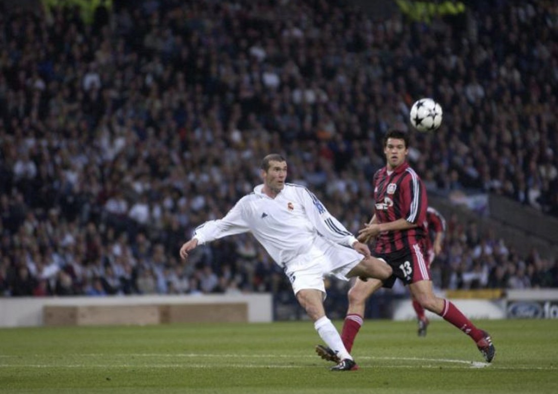 齐达内:这张照片拍的是2002年5月15日,在格拉斯哥举行的欧冠决赛对阵勒沃库森时我打进的那粒进球(比分2-1)。那一刻仿佛时间静止,是一种悬停在空中的巅峰瞬间。正是这个进球,让我的荣誉版图得以完整。