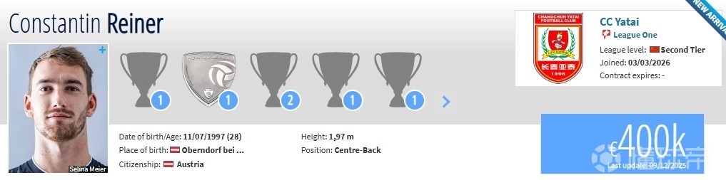 北京时间3月3日,德转更新,原陕西联合外援赖纳加盟长春亚泰。